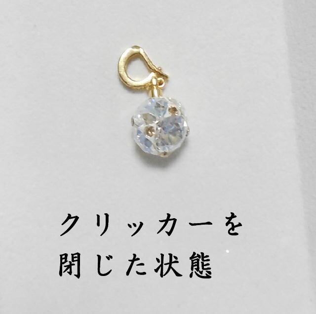 キャンディプチ大(直径12mm)にクリッカー(開閉できる金具)をセットしました。