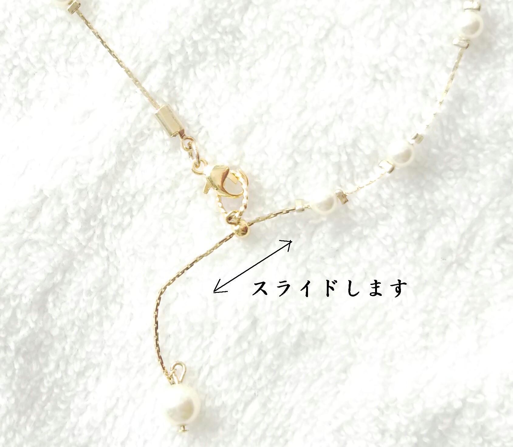2種類の小さめサイズのスワロフスキーパールを細めのチェーンに通しました。